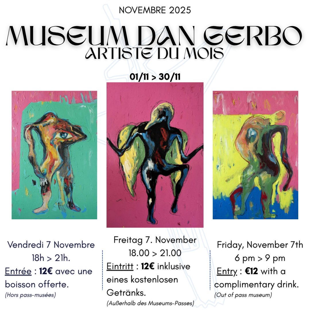 Wir freuen uns, Sie zur nächtlichen Eröffnung der Ausstellung über den französischen Künstler Patrick Musombwa einzuladen, der im Museum Dan GERBO zum Künstler des Monats November ernannt wurde.