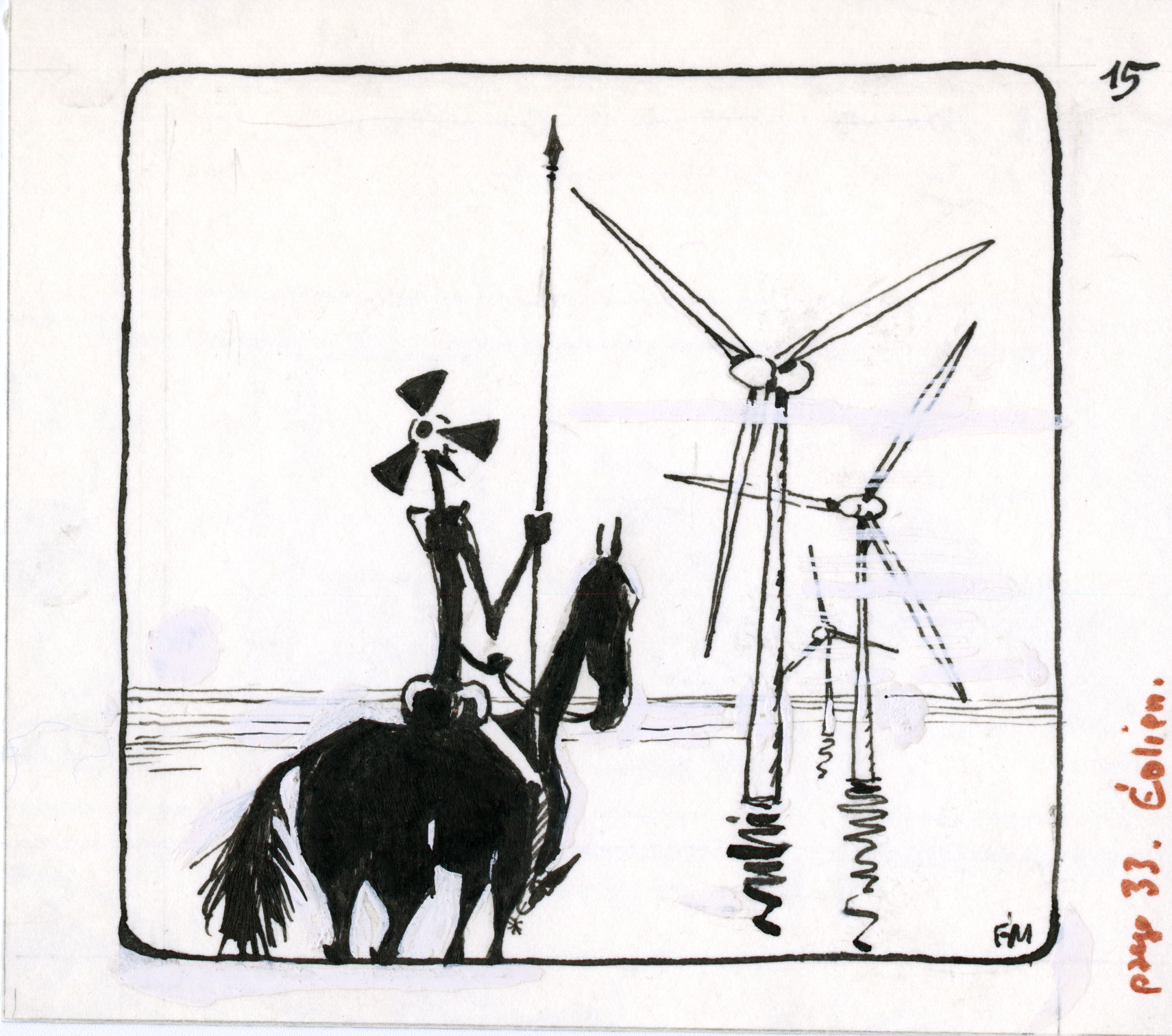 F’murrr (1946–2018) devient, dans les années 1970, un auteur de bande dessinée largement connu du grand public grâce à la série Génie des Alpages et compte bientôt parmi les représentants les plus célèbres de la BD humoristique dans le monde. Les moutons philosophes, évoluant dans des montagnes à la fois bucoliques et abyssales, sont empreints d’un amour du non-sens et de l’absurde qui traverse toute l’œuvre du dessinateur. On y retrouve en écho de nombreuses allusions à la littérature, à la culture quotidienne et à la philosophie. Outre l’œuvre de bande dessinée – tels les livres consacrés aux libres et redoutables héroïnes Jehanne d’Arc et Naphtalène, la première bande dessinée Au Loup et l’ouvrage le plus politique sur la guerre en Afghanistan dans les années 1980, Le Char de l’État – l’exposition présente pour la première fois de manière approfondie, et avec un regard dans les coulisses des étapes de création, l’œuvre d’illustration où résonnent les motifs de l’univers des bandes dessinées. On y découvre des dessins de presse ainsi que des illustrations pour des maisons d’édition, des revues et des agences telles que Notre Histoire, Utopia ou Anvar.