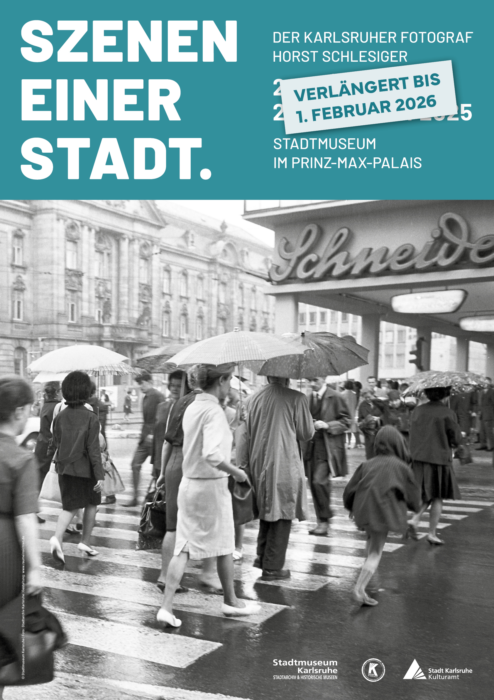 Anlässlich des 100. Geburtstags von Horst Schlesiger präsentiert das Stadtmuseum in der Sonderausstellung „Szenen einer Stadt. Der Karlsruher Fotograf Horst Schlesiger“ rund 300 Aufnahmen, die vielfältige Einblicke in sein Werk ermöglichen. Die Fotografien spiegeln das öffentliche, politische und gesellschaftliche Leben der Stadt, aber auch den Alltag, die Freizeit und die Arbeitswelt der Menschen, die hier auf besondere Weise sichtbar werden. Stimmungsvolle Natur- und Landschaftsaufnahmen, Architekturfotos und Bilder mit ungewöhnlichen Perspektiven, Spiegelungen oder dem Spiel von Licht und Schatten ergänzen die Auswahl. Horst Schlesiger wird dabei nicht nur als fotografischer Chronist Karlsruhes, sondern auch als Fotokünstler erkennbar.
