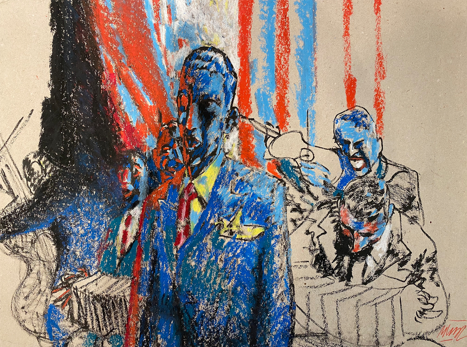 Muñoz’ Zeichenstil ist kompromisslos: tiefes Schwarz-Weiss, weder Schraffuren noch Zwischentöne. Die Figuren changieren zwischen beinahe realistischer Darstellung und grotesker Karikatur – ein spannungsgeladenes Wechselspiel von Alptraum und Wirklichkeit.