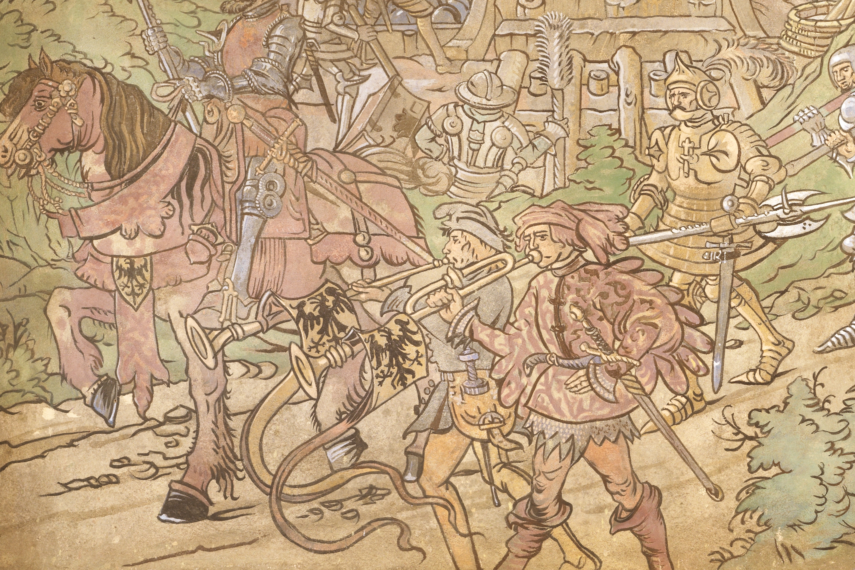Die Haut-Koenigsbourg war nicht nur Schauplatz von Waffengewalt. Auch Musikinstrumente fanden hier ihren Platz und verliehen der kriegerischen Welt der Burg einen Hauch von Poesie. Alte Inventarlisten und archäologische Funde zeugen davon, während andere Instrumente bei der Restaurierung zu Beginn des letzten Jahrhunderts in die Ausstattung des Denkmals aufgenommen wurden.