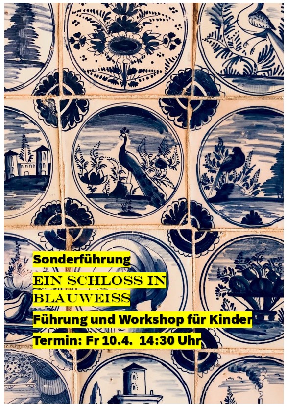 Überall blauweiß – Teller, Vasen und sogar Möbel tragen im Schloss diese Farben. Tausende von blauweißen Fliesen schmücken Wände, Treppen und Kamine. Warum Markgräfin Sibylla Augusta diese Farben liebte, wird bei einem spannenden Rundgang erklärt. Anschließend können die jungen Gäste ihre eigenen Fliesen bemalen.