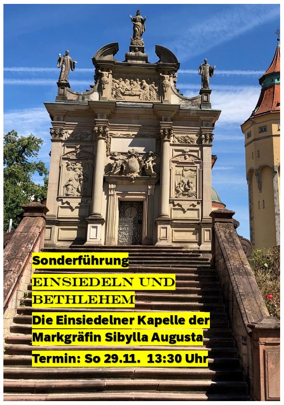 Eine doppelte Kopie: Mit der Einsiedelner Kapelle nahe der Murg ahmte Sibylla Augusta den berühmten Marienwallfahrtsort Einsiedeln und im Untergeschoss die Geburtsgrotte Jesu in Bethlehem nach. Was bezweckte Sibylla Augusta mit solchen Nachbauten? Die Führung bietet die seltene Gelegenheit, die Kapelle von innen zu besichtigen und mehr über die Wallfahrten der Markgräfin zu erfahren.