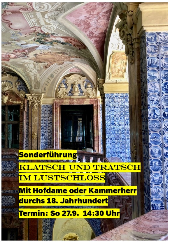 Ehrenwerte Damen und Herren aus dem Hofstaat der Markgräfin Sibylla Augusta berichten aus erster Hand über Ereignisse und Geheimnisse rund um das Leben im Lustschloss Favorite. Wie wurden hier Feste gefeiert, wie veranstaltete man eine Jagd? Warum zog sich Markgräfin Sibylla Augusta von Zeit zu Zeit in die Eremitage zurück? Viele interessante Details erfährt man von diesen Zeitzeugen in eleganter barocker Kleidung.