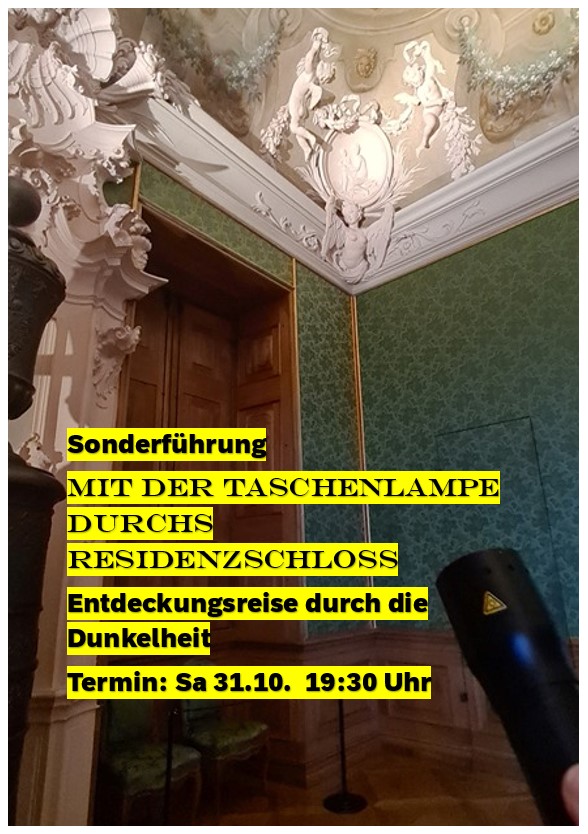 Das Schloss zeigt sich in einem ganz neuen Licht: Bei dieser abendlichen Taschenlampenführung entfaltet die einstige Residenz ihre geheimnisvolle Seite. In flackerndem Schein erwachen Gestalten zum Leben, Gemälde scheinen sich zu bewegen, und Geschichten aus vergangenen Jahrhunderten werden lebendig. Vielleicht zeigt sich sogar die weiße Frau – der Schlossgeist. Ein magischer Abend voller Atmosphäre, Geschichte und faszinierender Entdeckungen.