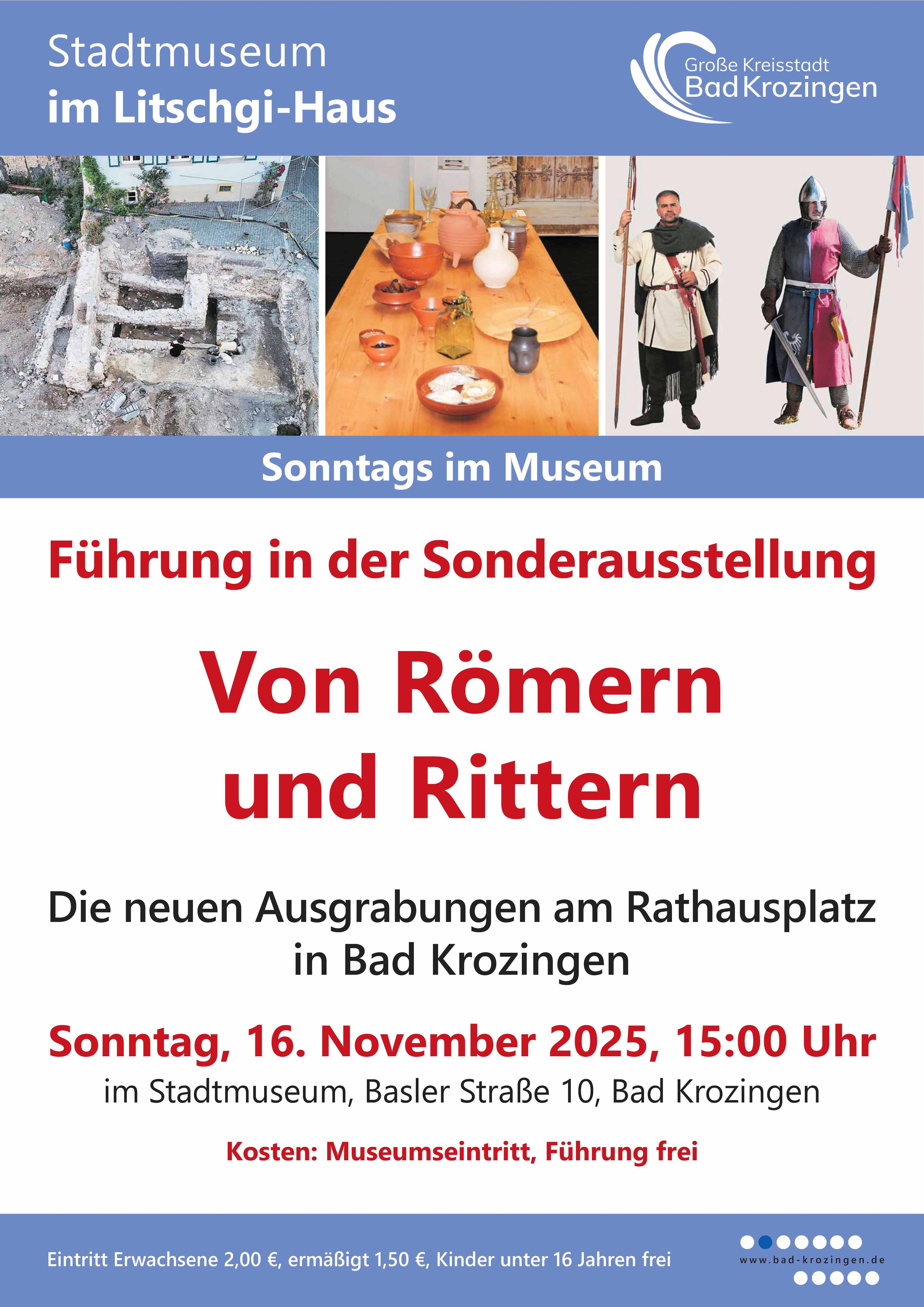 Am Sonntag, den 16. November 2025 um 15 Uhr findet eine Führung mit Dr. Christel Bücker in der Sonderausstellung „Von Römern und Rittern in Bad Krozingen“ statt.