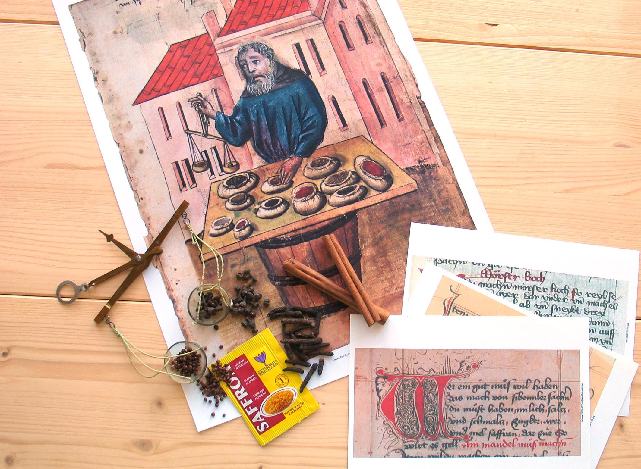 Gewürze! Wer es sich leisten konnte setzte sie im Mittelalter und in der frühen Neuzeit in für uns heute ungewohnter Fülle ein. Neben heute üblichen auch Paradieskörner, Langer Pfeffer, Kubebenpfeffer, Zimtblüte - Köstlichkeiten, die, lange zu Unrecht vergessen, auf ihre Wiedereinführung warten. Und Safran, der den Speisen nicht nur einen wunderbaren Geschmack, sondern auch eine wunderschöne Farbe gibt. "Spatmittelalter", "Safran" und "Oberrhein" gehören zudem auf eine sehr überraschende Weise eng zusammen ...
