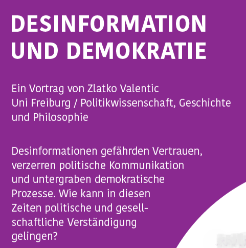 The second lecture and discussion event in the "Treffpunkt Museum" series with the Förderverein Stadtmuseum Schopfheim: Disinformation, such as fake news and deepfakes, jeopardizes trust, distorts political communication and undermines democratic processes. How can political and social understanding succeed in these times?