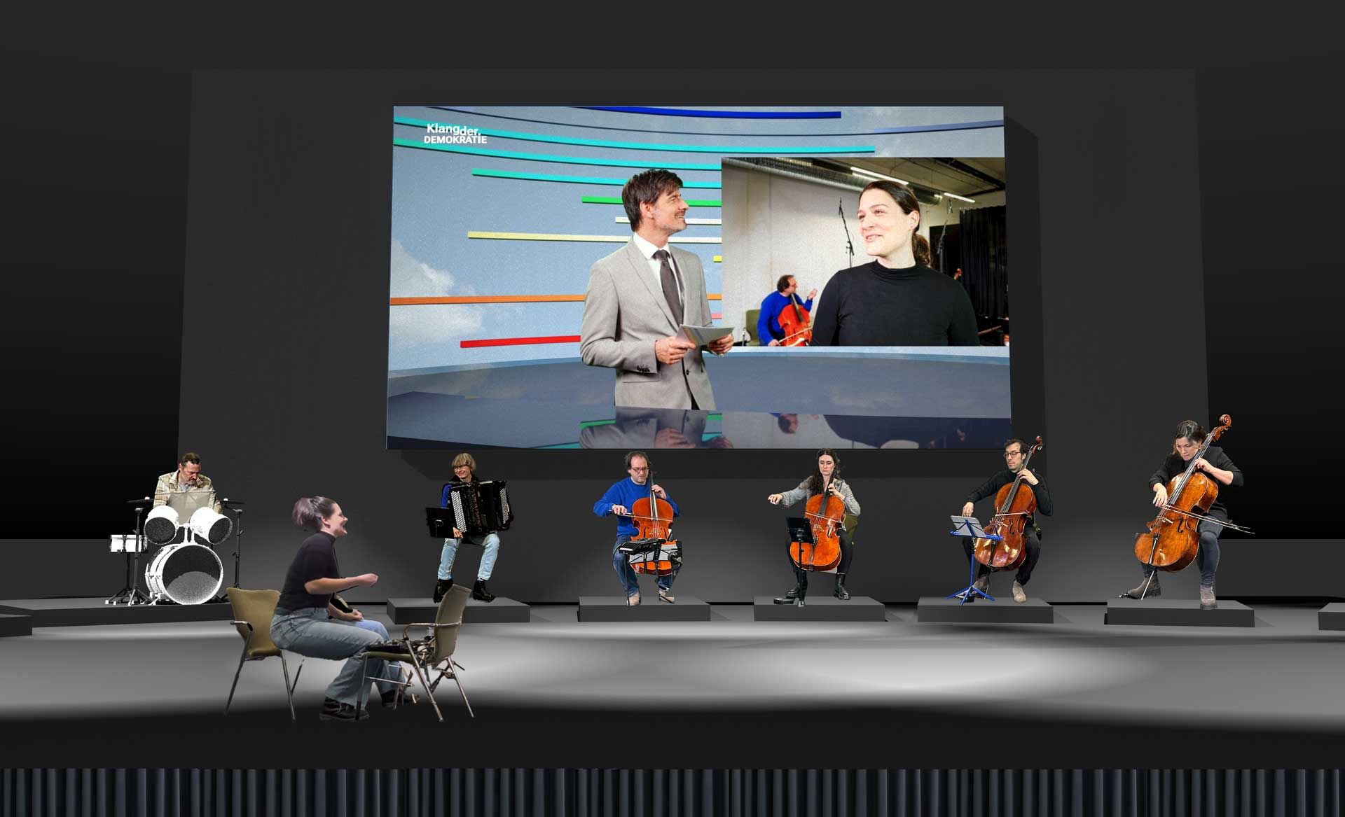 In a multimedia production, 16 artists search for the sound of democracy. The interactive performance of music, language, light and film installations takes us on a virtual journey to 16 important places, events and personalities in the history of democracy in Germany.