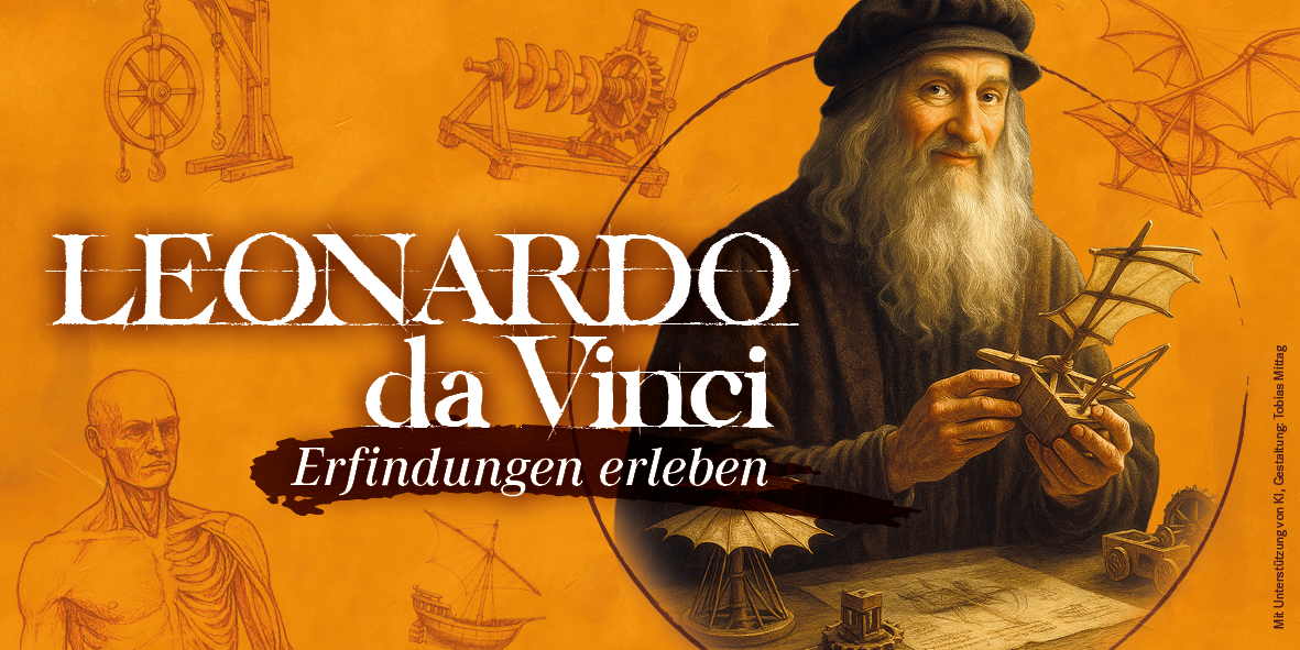 Leonardo da Vinci (1452 - 1519) was not only a famous painter, but also a polymath and visionary inventor. The special exhibition invites you into the workshop of the ingenious engineer. After a special welcome by the Mona Lisa, visitors discover the master's ideas, which were often far ahead of their time. Leonardo experimented with innovative drives and developed machines for a wide variety of applications. He designed bridges and vehicles and was inspired by nature to create unusual flying objects. More than 20 interactive constructions and hands-on stations keep things moving. Children and adults can immerse themselves in Leonardo's world and experience his inventions up close by touching and trying them out. The spectrum ranges from a drum machine to a parachute and mirror chamber to a pedal boat. An exhibition that fits in perfectly with Mannheim, the city of inventors, where the bicycle and automobile, among other things, had their beginnings.