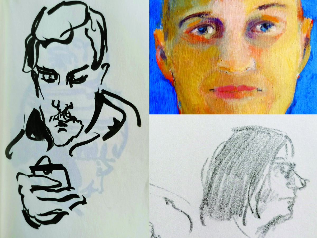Dans l'atelier, le visage humain est étudié dans des exercices de dessin et devant les images exposées dans l'exposition.