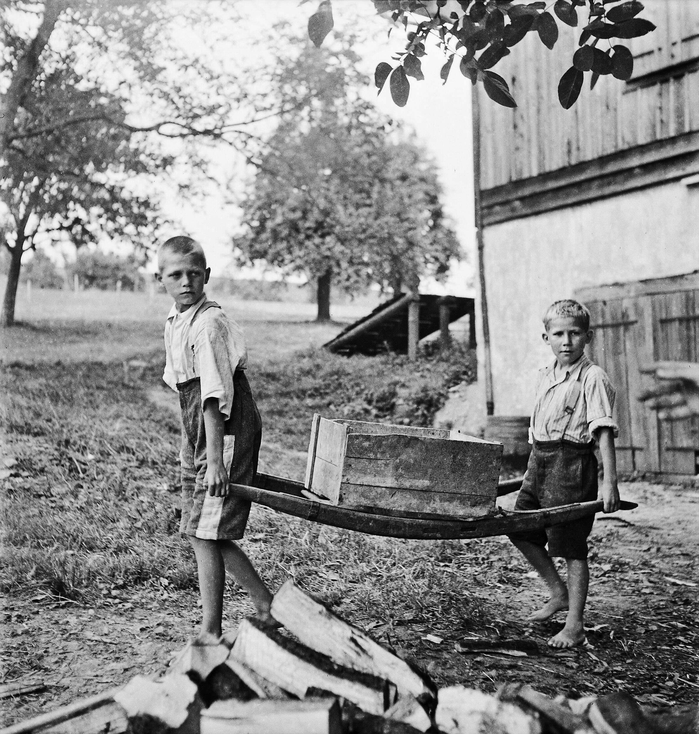 Photo : Garçons à la maison de correction du Sonnenberg au travail à Kriens, 1944. Paul Senn n'a pas identifié les enfants photographiés. Fondation Gottfried Keller, Berne, dépôt de la Fondation Gottfried Keller, Photo : Paul Senn