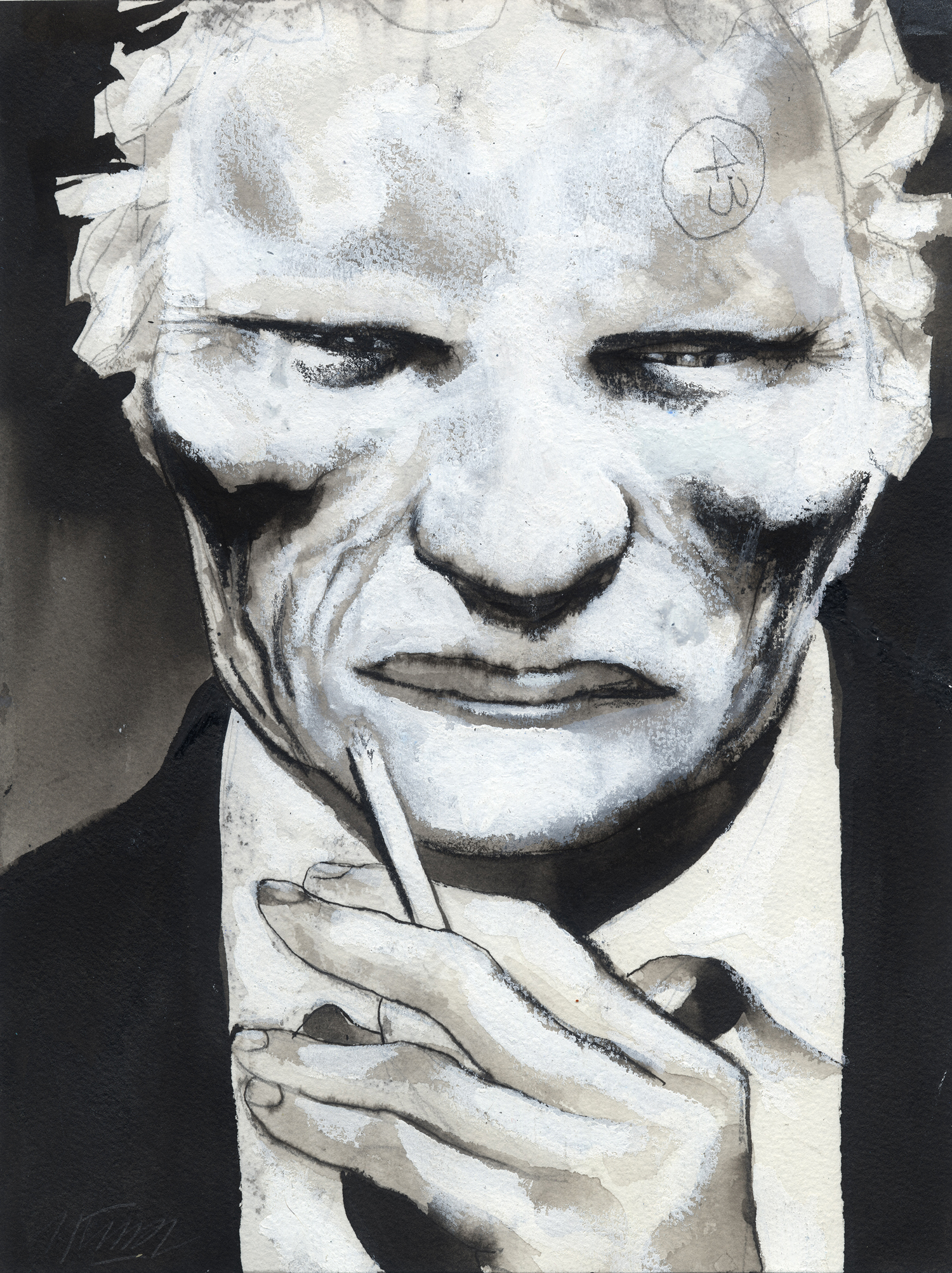 Visage d'un homme tenant une cigarette à la main