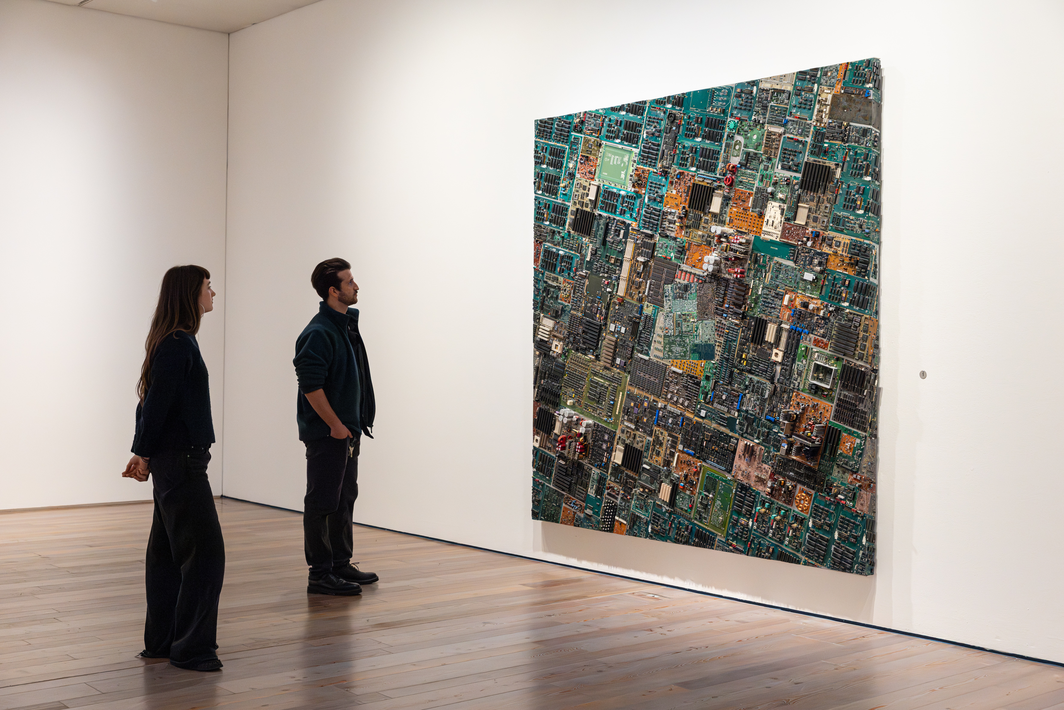 Image ci-dessous: Vue de l'installation : Carl Cheng : Nature Never Loses au Musée Tinguely, Bâle, 2025 Titre : Anthropocene Landscape #1 Artiste:in & ; Participant : Carl Cheng Date de création : 2006 Matériaux/technique : circuits imprimés et rivets sur aluminium Copyright : © Carl Cheng Creditline : Courtesy the artist and Philip Martin Gallery, Los Angeles Crédit photo : 2025-26 Museum Tinguely, Basel ; Matthias Willi