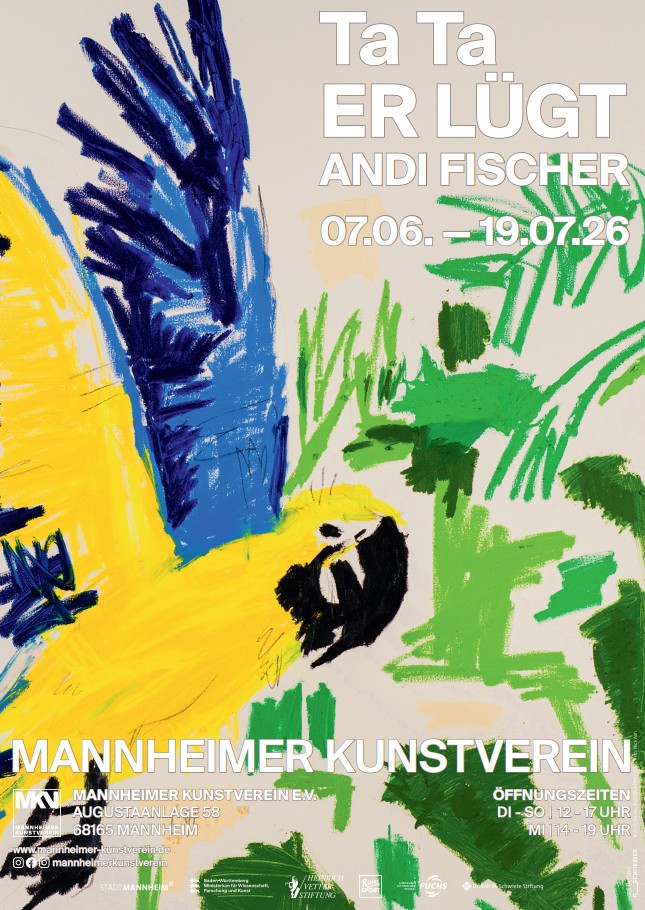 La peinture d'Andi Fischer (né en 1987) évolue entre une immédiateté colorée et des mises en place conscientes. Plutôt inhabituel dans l'art contemporain, Andi Fischer travaille avec des pastels à l'huile, qui permettent une peinture très couvrante, aux couleurs intenses, et donnent à ses tableaux une corporalité unique - les traces de matériaux restent visibles, l'espace pictural devient un champ d'événements gestuels. Ses figures semblent à première vue naïves et ouvertes, parfois presque désinvoltes, et pourtant elles sont construites avec précision et composées de manière réfléchie. Avec humour et ironie, Andi Fischer crée une proximité émotionnelle avec ses images et ouvre ses travaux à des réflexions sur l'histoire de l'art et à des souvenirs picturaux. Entre dessin et peinture, contrôle et geste spontané, Andi Fischer élabore une figuration actuelle qui renégocie les thèmes traditionnels et la logique picturale traditionnelle. Ce qui semble léger s'avère être une confrontation précise et éveillée avec les possibilités de notre peinture contemporaine.